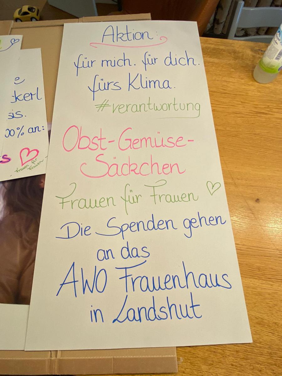 Obst- Gemüsesäckchen Aktion vom Frauenbund. Die Spenden gehen an die AWO Landshut.