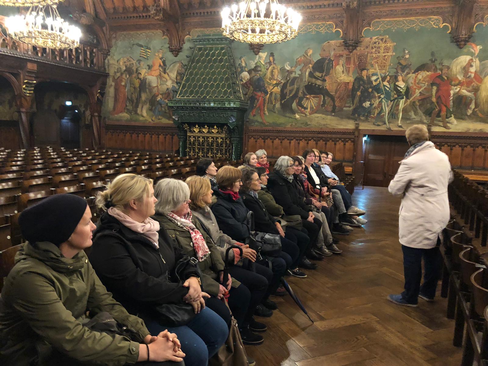 Essenbach: Der Frauenbund erlebte am vergangenen Wochenende eine äußerst kurzweilige Stadtführung in Landshut. Die Stadtführerin Helga Nachtmann brillierte mit ihrem Wissen und verstand es mit Ihrer äußerst lebhaften Erzählweise die Teilnehmerinnen stets an Ihre Ausführungen zu fesseln. Sie zeigte interessante Einblicke über versteckte Einzelheiten wie z. B. bei St. Martin die Gesichter in den Eisenbeschlägen der Tore oder das Bild vom nackten Jesus an der Rückseite des Domes. Das perfekte Timeing hatte beim Verlassen des Domes das einsetzende Orgelspiel mit dem Gesang einer Sopranistin, welches bei den Anwesenden Gänsehautfeeling verursachte. Bei dem Rundgang durch die Stadt durften natürlich der wunderschöne Rathausprunksaal und der erste Renaissance-Palast nördlich der Alpen nicht fehlen. Viel zu schnell vergingen die 2 Stunden der Führung - man trennte sich in dem gegenseitigen Versprechen einer Wiederholung im Jahr 2020 - vielleicht dann bei Geschichten auf der Burg Trausnitz.