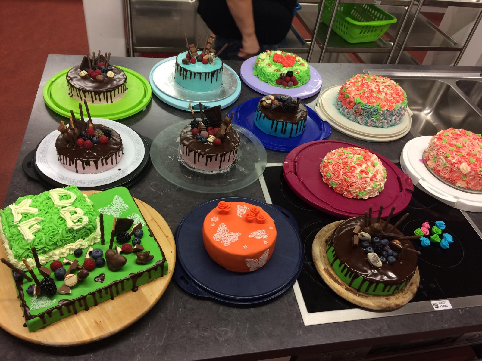 Es wurden Buttercreme Rosentorten und Drip Cakes gezeigt, auch das eindecken einer Torte mit Fondant konnten die Teilnehmerinnen erlernen. Am Schluss konnte jede Teilnehmerin eine eigene Torte gestalten und das Kunstwerk mit nach Hause nehmen.
