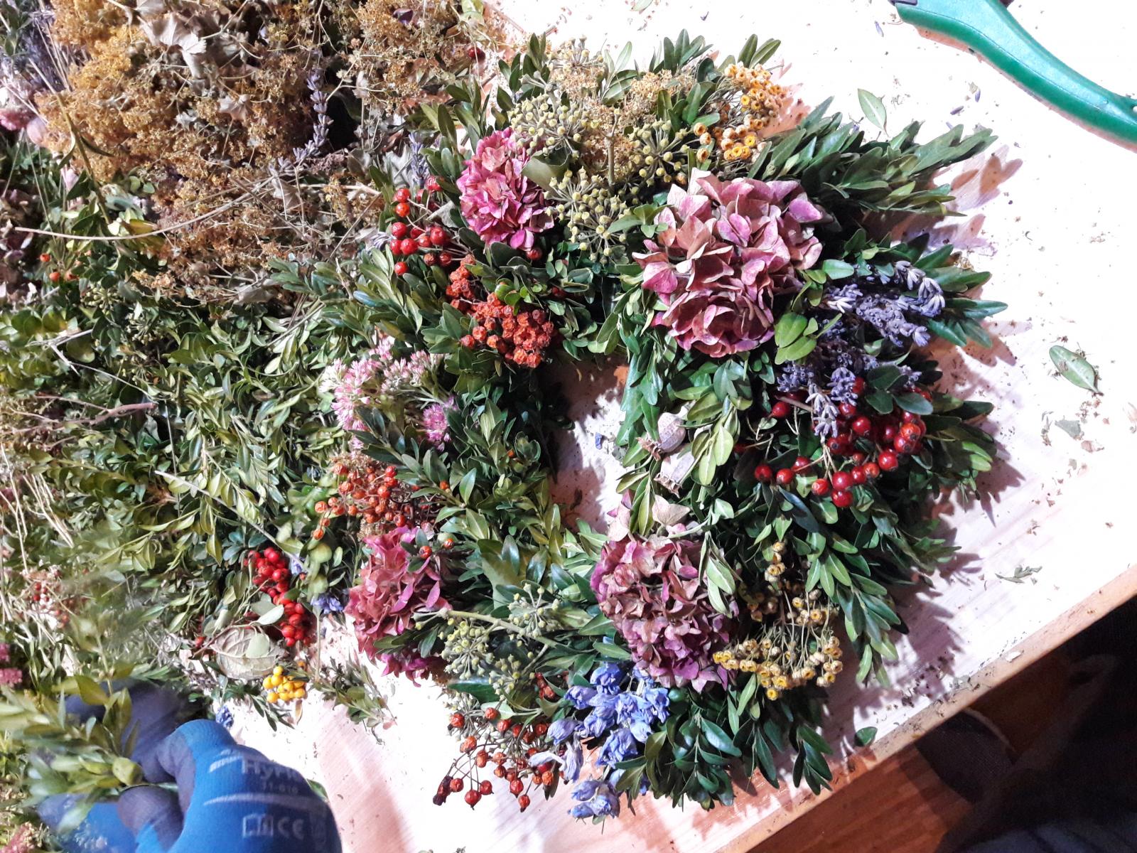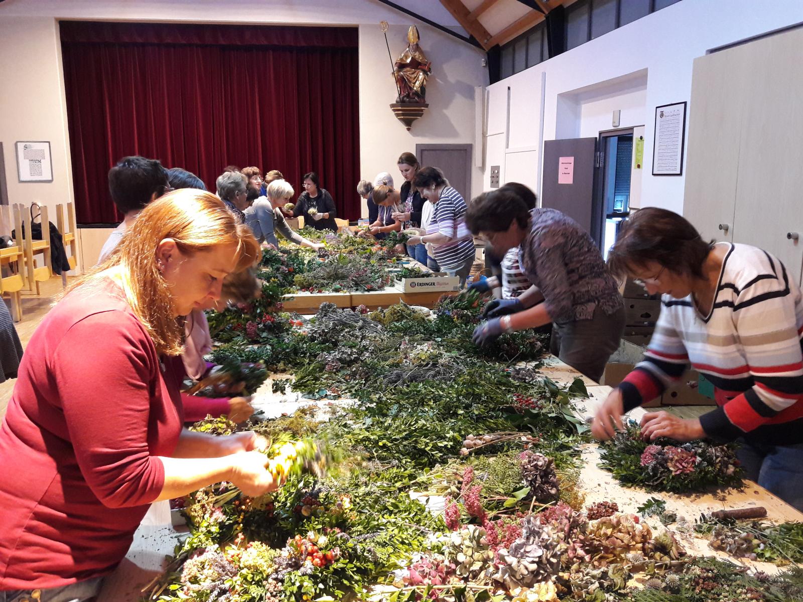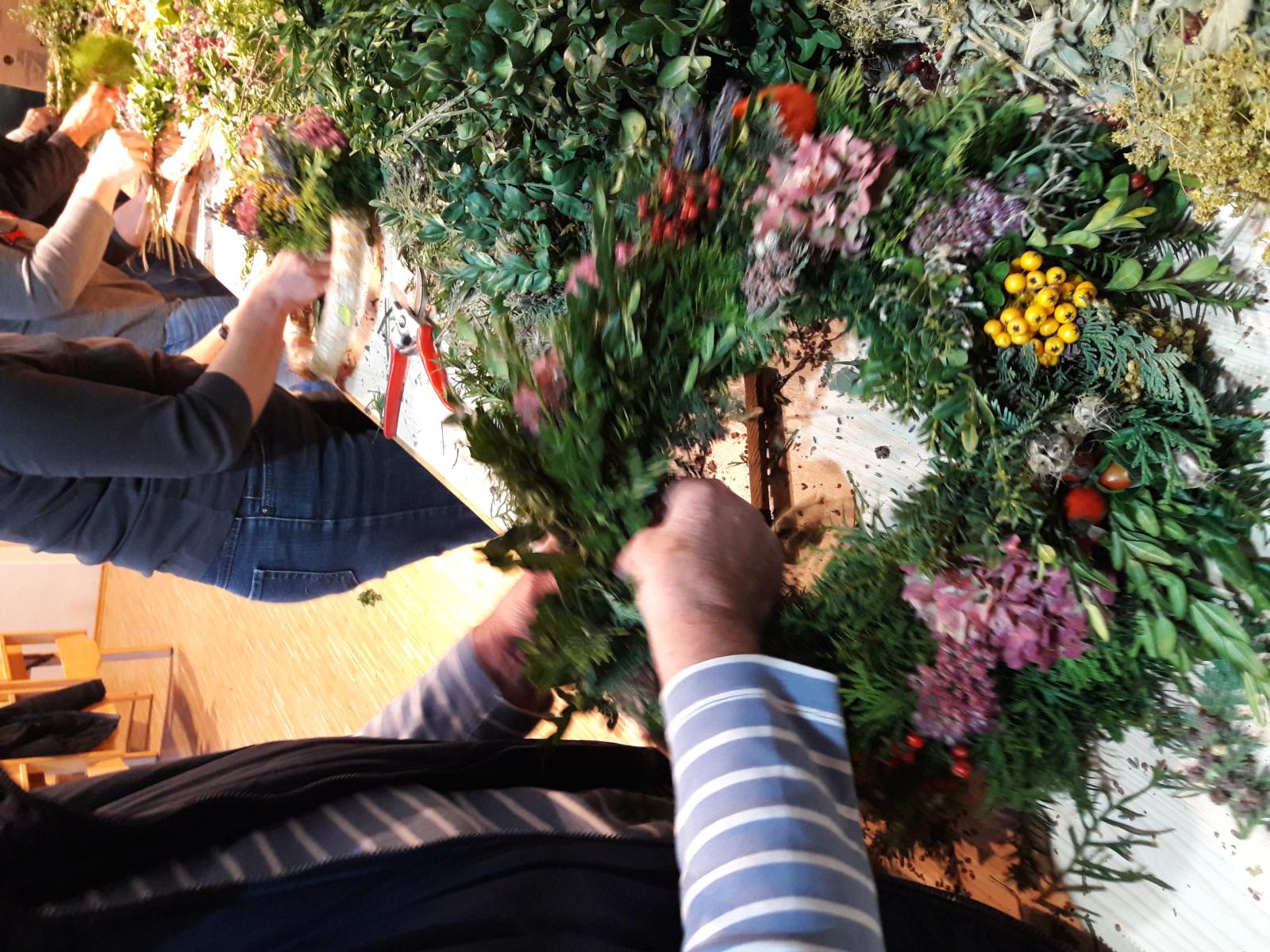 Unter der Leitung von Christa Barkowski konnten 28 Teilnehmer aus der Vielzahl von getrockneten Blüten und Pflanzen Herbstkränze binden. Jede, egal ob Erfahrene oder Anfängerin ging am Ende des Kurses mit einem wunderschönen Exemplar nach Hause.