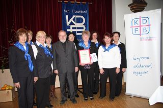 Der mit Spannung erwartete Festvortrag der stellvertretenden Diözesanvorsitzenden Marlene Holst berührte die Frauen sehr. „Sie haben sich den KDFB auf die Fahne geschrieben und ich wünsche Ihnen einen Weg, der tragfähig und gangbar ist, weiterführt und ein Ziel hat und zum Mitgehen einlädt“ sagte sie eingangs und zitierte Maria Hillering-Hames mit der nachdenkenswerten Feststellung „Jede ist anders, doch anderssein ist nicht weniger gut“. Frauen tragen die Ziele ihres Vereins schon über viele Jahre hinweg mit und schätzen die vier Säulen, auf denen der Verband ruht: Bildung, Engagement, weibliche Spiritualität und Gemeinschaft. Für das Verständnis der eigenen Identität mache es Sinn, sich mit den Wurzeln des KDFB zu beschäftigen. Noch vor hundert Jahren verfügten die Frauen kaum über Rechte, Vermögen und Fähigkeiten waren automatisch Besitz des Mannes, ebenso stand denen die Entscheidung in allen Angelegenheiten zu. Aus dieser Situation schlossen sich 1894 verschiedenste Frauenvereine zusammen mit der Idee, gleiche bürgerliche Rechte wie für Männer, Bildungszugang, Wahlrecht und Mitsprache im öffentlichen Leben zu erlangen. Im Jahr 1903 wurde in Köln der katholische Frauenbund gegründet, 1910 der erste bayerische Zweigverein in Regensburg. Seither haben sich die Frauenbund-Frauen vielseitig eingesetzt und noch mehr bewegt: schulische und berufliche Bildung, Bahnhofsmission, sozial-karitative Frauenschule, Berufsberatungsstellen, Nähstuben, Familienhilfe, Müttererholung, Müttergenesungswerk, Gründung Haus für das Leben. Die Errungenschaften von damals scheinen heute selbstverständlich, doch es gilt der gleiche Grundsatz im Verband, die Bedürfnisse der jetzigen Zeit zu erkennen und im christlichen Sinn danach zu handeln. Das Ziel des KDFB ist eine wertorientierte, religiös motivierte politische Interessenvertretung, um am Aufbau einer Gesellschaft und Kirche mitzuwirken, in der Frauen und Männer partnerschaftlich zusammenleben und Verantwortung tragen für die Zukunft in einer friedlichen, gerechten und für alle lebenswerten Welt. Für dieses Ziel, so die Diözesanvorsitzende, brauche es immer Frauen, die sich der Verantwortung stellen, sich den Blick für die Bedürfnisse der Mitmenschen erhalten und neben Familie und Beruf noch Zeit und Kraft fänden, sich ehrenamtlich zu engagieren.