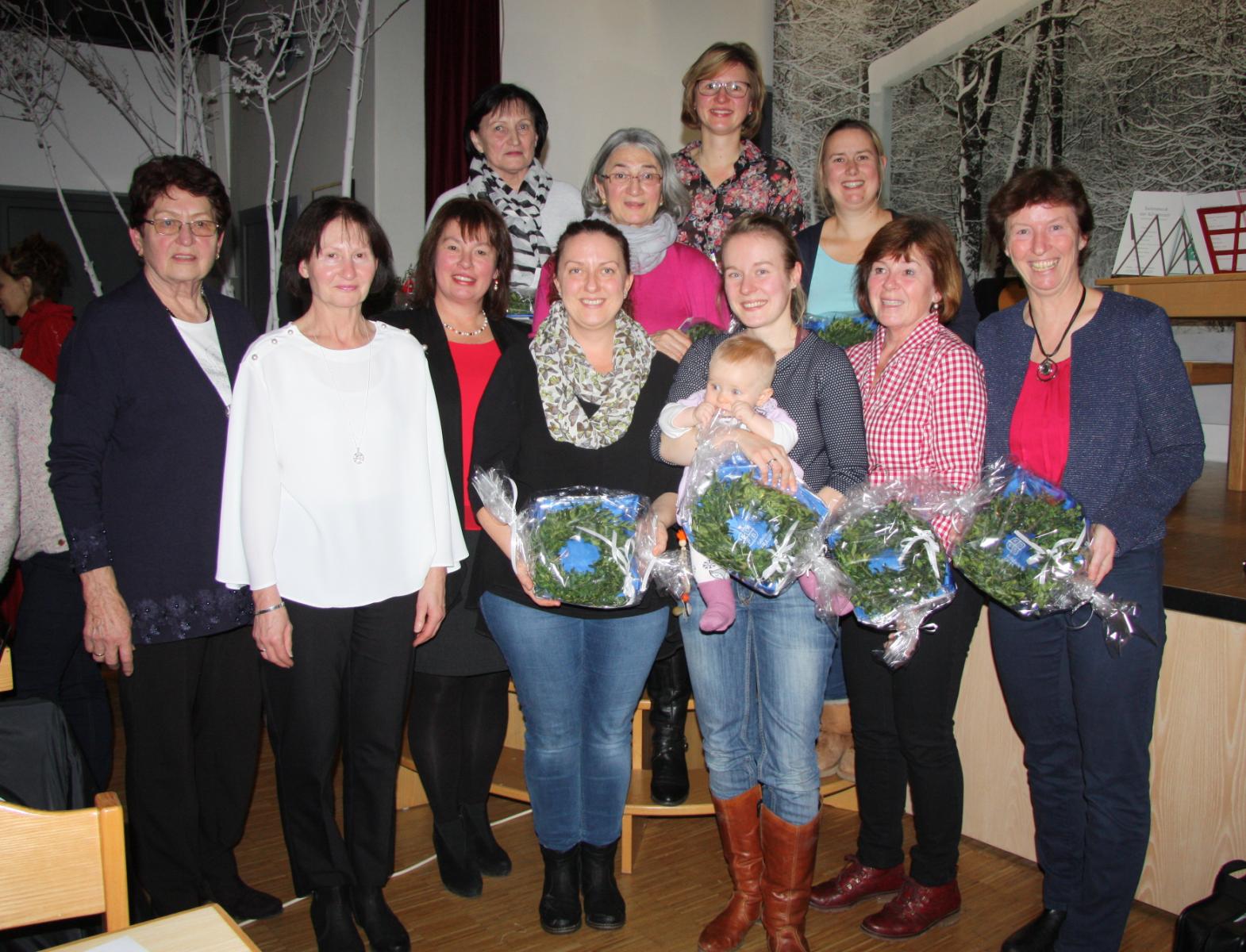 Attraktive Angebote, weitgestreute Interessen, gegenseitiger Respekt und soziales Engagement zeichnen den Katholischen Frauenbund, Zweigverein Essenbach aus. Deshalb erfreut er sich großer Beliebtheit und einer regen Nachfrage. Eine gesunde Mischung von sehr jungen, mittleren und älteren Mitgliedern kommt der Gemeinschaft besonders zu Gute. Von allen herzlich aufgenommen und der Vorstandschaft mit einem Buchskranzerl beschenkt wurden Lilly Abstreiter, Gerlinde Fleischmann, Sonja Gschwendtner, Annemarie Krinner, Katharina Lenzenhuber, Petra Maier, Silvia Nirschl, Veronika Rattenberger, Cornelia Vormittag und Elisabeth Wimmer. Seitens der „jungen Gruppe“ dankte Brigitte Gahr für die tolle Unterstützung, vor allem bei praktischen Anleitungen durch Christa Barkowski.