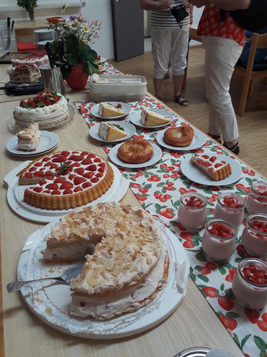 Viele Gäste kamen zum Erdbeerfest des Frauenbunds. Unsere Mitglieder zauberten ein reichhaltiges Buffet ...... Erdbeertorte, Erdbeerkuchen, schokolierte Erdbeeren, Nachspeisen, Bowle oder Erdbeerlimes schmeckten köstlich.