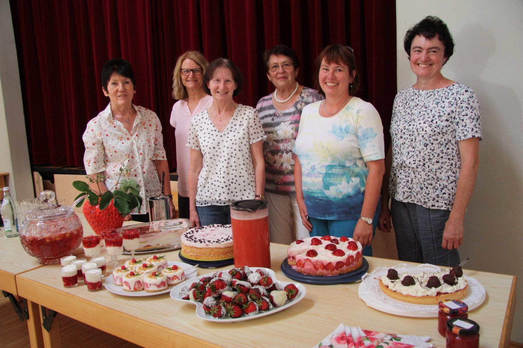Zum Erdbeerfest kamen viele Frauen und auch ein paar Männer und ließen sich von den leckeren Erdbeer-Köstlichkeiten verwöhnen. Viele Frauen trugen zum reichhaltigen Buffet bei und ließen so einen Blick in Ihre Rezept-Sammlungen erahnen.