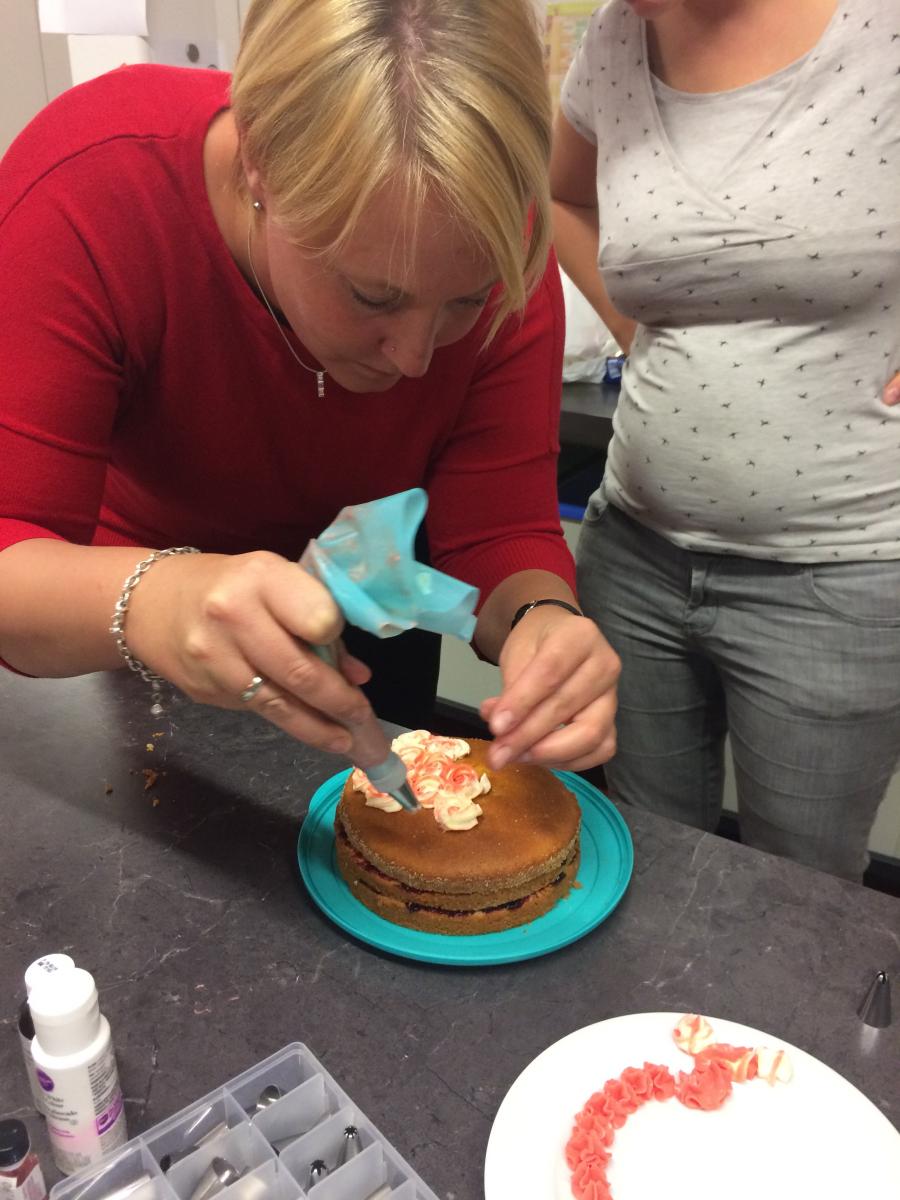 Es wurden Buttercreme Rosentorten und Drip Cakes gezeigt, auch das eindecken einer Torte mit Fondant konnten die Teilnehmerinnen erlernen. Am Schluss konnte jede Teilnehmerin eine eigene Torte gestalten und das Kunstwerk mit nach Hause nehmen.