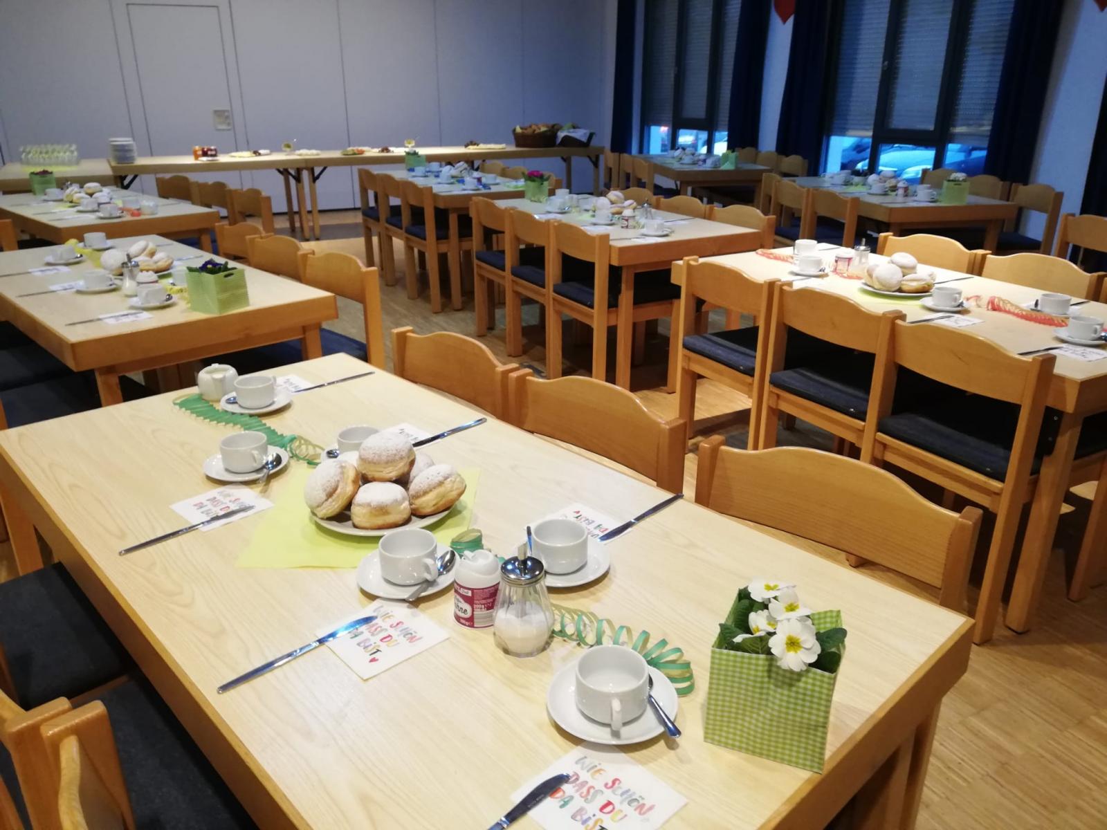 Zum "Faschingsfrohen Frühstück" trafen sich die Frauenbundfrauen im Pfarrheim. Endlich darf wieder gefeiert werden. Berühmte Gäste waren geladen