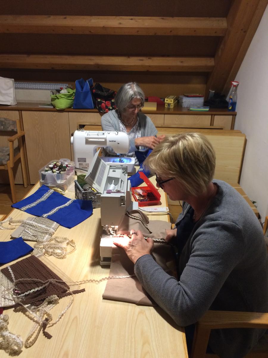 Jede bringt Ihre Nähmaschine und ein eigenes Projekt mit.